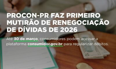 O Procon-PR iniciou o primeiro mutirão de renegociação de dívidas de 2026, realizado de forma totalmente online. A ação tem como objetivo facilitar a regularização financeira...