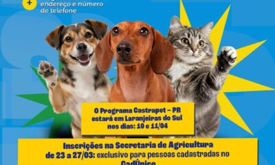 As atividades que antecedem o CastraPet Paraná, que será realizado nos dias 10 e 11 de abril, já estão em andamento em Laranjeiras do Sul. Nesta...