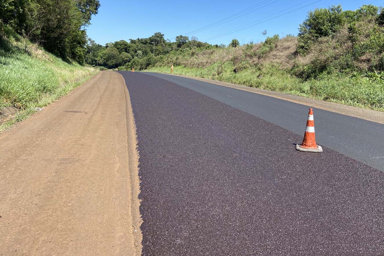 Ao longo do trecho foi executado o serviço de microrrevestimento asfáltico, com aplicação de uma massa com espessura de milímetros que ajuda a selar a pista contra a ação do clima, aumenta a vida útil do pavimento. Na sequência foi feita a pintura da nova sinalização horizontal no eixo e bordo da pista, e também a instalação de tachões refletivos bidirecionais nos segmentos em perímetro urbano.