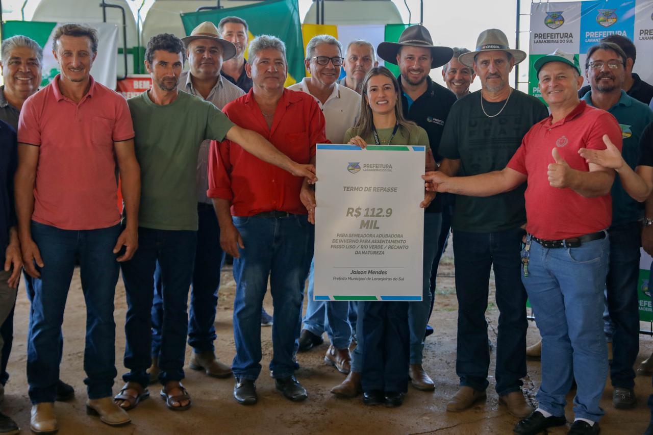 Na sexta-feira (24), no pavilhão do Assentamento Passo Liso, a Prefeitura de Laranjeiras do Sul realizou a entrega de uma semeadora adubadora de inverno, avaliada em R$ 112.990,00. O equipamento foi destinado às comunidades do Assentamento Passo Liso, Recanto da Natureza e Rio Verde, e adquirido por meio de emenda parlamentar do deputado federal Elton Welter, com apoio do vereador Tarso Campigotto.