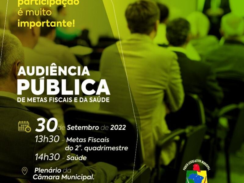 O Poder Legislativo Municipal convida a comunidade para participar na próxima semana, dia 30 de setembro, de duas audiências públicas. A Comissão de Finanças promove a...