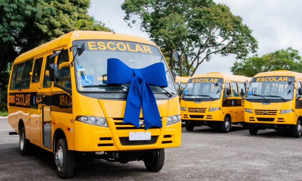 Os secretários Renata Marquetti Rossetim (Governo) e Valter Rech (Transportes) receberam nesta segunda-feira, 19, das mãos do governador Ratinho Junior um ônibus 0 km para o...