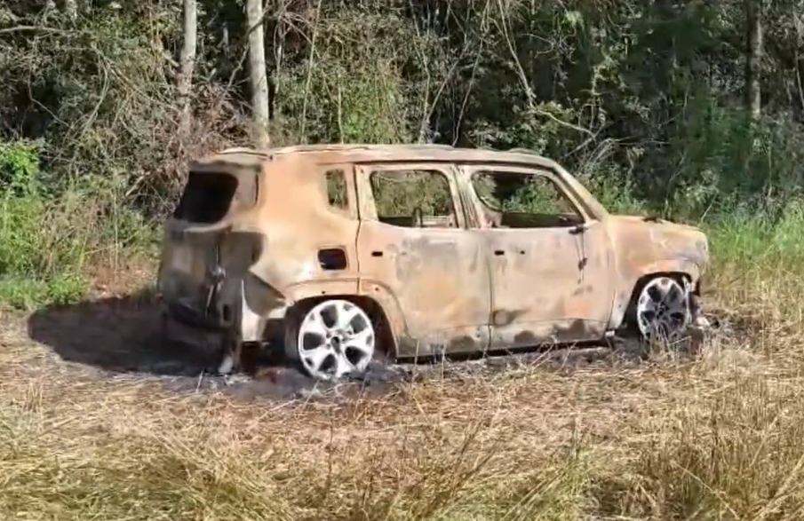 Um corpo carbonizado foi encontrado no porta-malas de um Jeep Renegade queimado no Km-387 da BR-373, em Candói, na tarde deste sábado (27). A descoberta foi feita por funcionários de uma propriedade rural, que acionaram a Polícia Militar por volta das 13h.