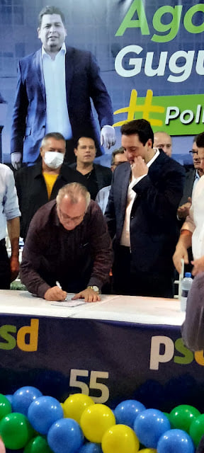 Sob o olhar atento do Governador Ratinho Júnior, o Prefeito de Rio Bonito do Iguaçu, Sezar Bovino, que também é presidente da Associação Cantuquiriguaçu, assinou nesta noite de terça-feira(22), em Curitiba, ficha de filiação ao PSD. O Partido Social Democrático é um partido político brasileiro fundado e registrado oficialmente em 2011. A convite do Governador Ratinho Júnior, Sezar Bovino se filiou ao PSD e disse que esse alinhamento político é por demais importante para as aspirações de Rio Bonito do Iguaçu. E, considera que o partido sai fortalecido com as novas filiações aumentando sua representatividade nos quadros políticos do Estado.
