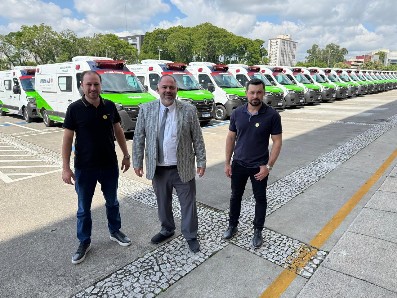 O município de Laranjeiras do Sul foi contemplado com uma ambulância tipo UTI móvel na cerimônia de entrega de 150 veículos realizada pelo Governo do Paraná. O prefeito Jaison Mendes e o secretário de Finanças Lenon Simeoni representaram a cidade no evento conduzido pelo governador Carlos Massa Ratinho Junior, que marcou o início da distribuição da nova frota da Secretaria de Estado da Saúde (Sesa).